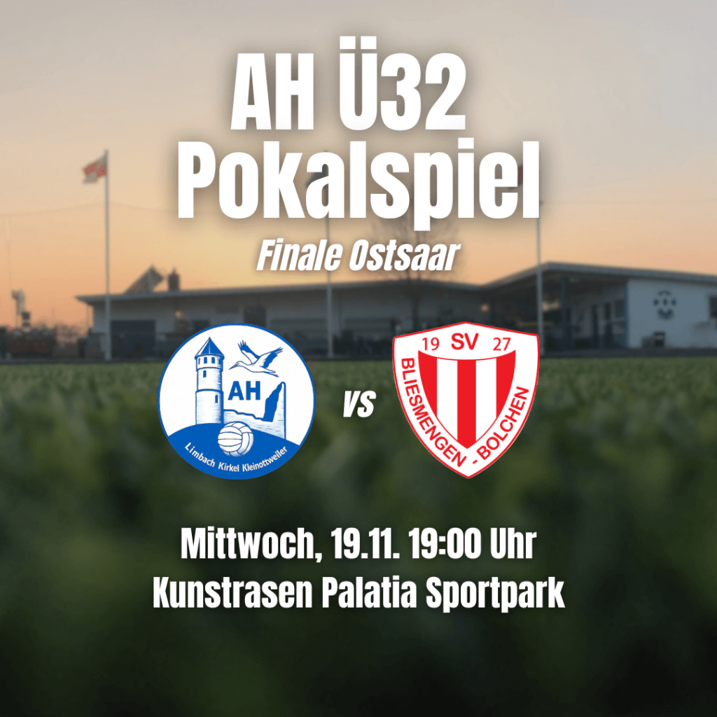 Am Mittwoch um 19 Uhr spielt unsere AH zuhause auf unserem Kunstrasen gegen die SG Bübingen/Bliesmengen um den Sieg im Kreispokal des Ostsaarkreis.