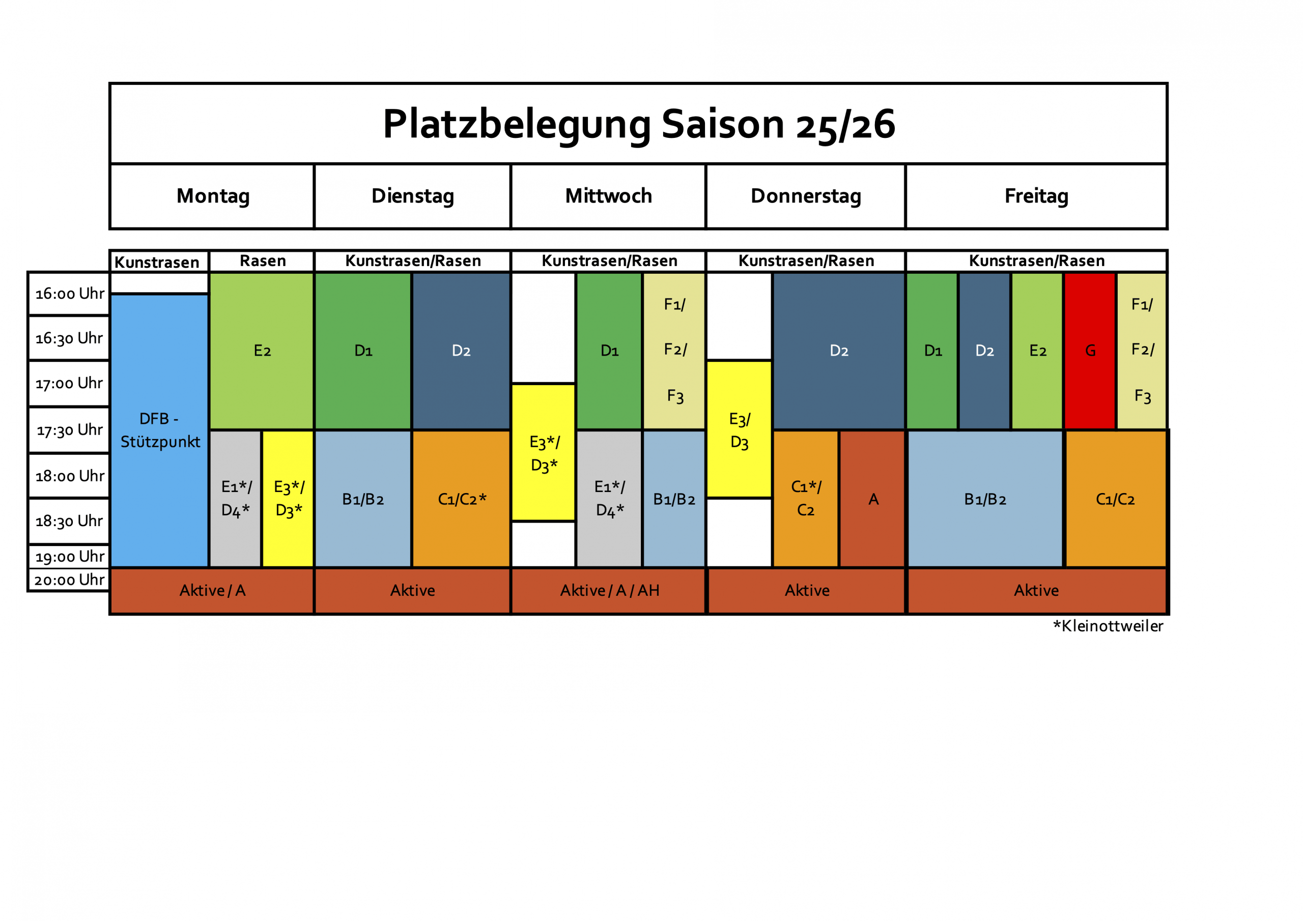 Kurzfristige Änderungen können vorkommen. Bitte mit dem jeweiligen Trainer abstimmen.